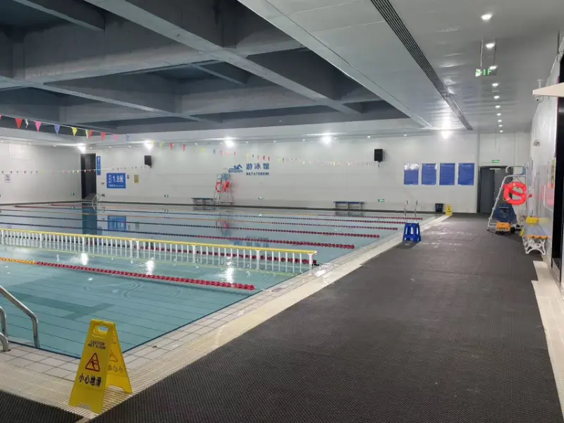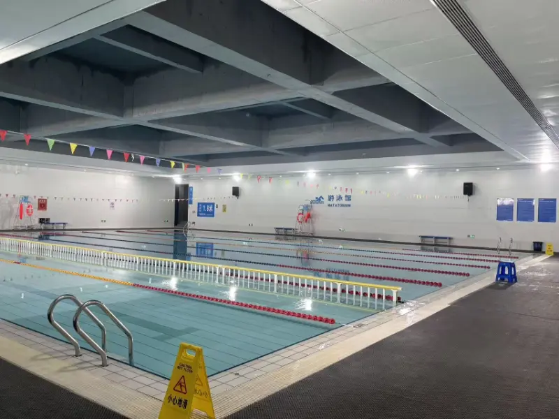Екстериорът на плувния басейн се отличава с метална панелна система от рибени люспи, създаваща подобен на мащаб ефект на светлина и сянка, който се променя с извивката на фасадата и посоката на слънчевата светлина, подобрявайки "потока на водата". Цялата покривна конструкция на зоната на закрития басейн е изложена, с ферма, обхващаща 48 метра, подчертавайки изричния израз на структурната логика и подсилвайки пространствения мащаб и усещането за сила на спортното място. Мястото разполага с два басейна: басейн за състезания и басейн за тренировки. Състезателният басейн е с дължина 50 метра и ширина 25 метра, с 8 алеи; тренировъчният басейн е с дължина 50 метра и ширина 17 метра, с 6 алеи. И двата басейна са с дълбочина 2 метра.
